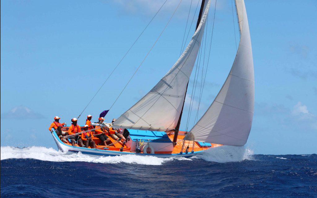 Every year, we race in the Antigua Classic Yacht Regatta www.antiguaclassics.com with a crew of young Antiguan Sail trainees. You will recognize our race crew in their bright orange shirts, matching the vibrant colours of “New Moon”. The sail trainees play an active role in racing “New Moon” and demonstrating the skills they have learned during sail training. Last year, our sail trainee, Nevin, was at the helm, steering “New Moon” to an impressive third place in our class. Our race crew of young Antiguan sailors are more than up to the challenge of winning again this year!
