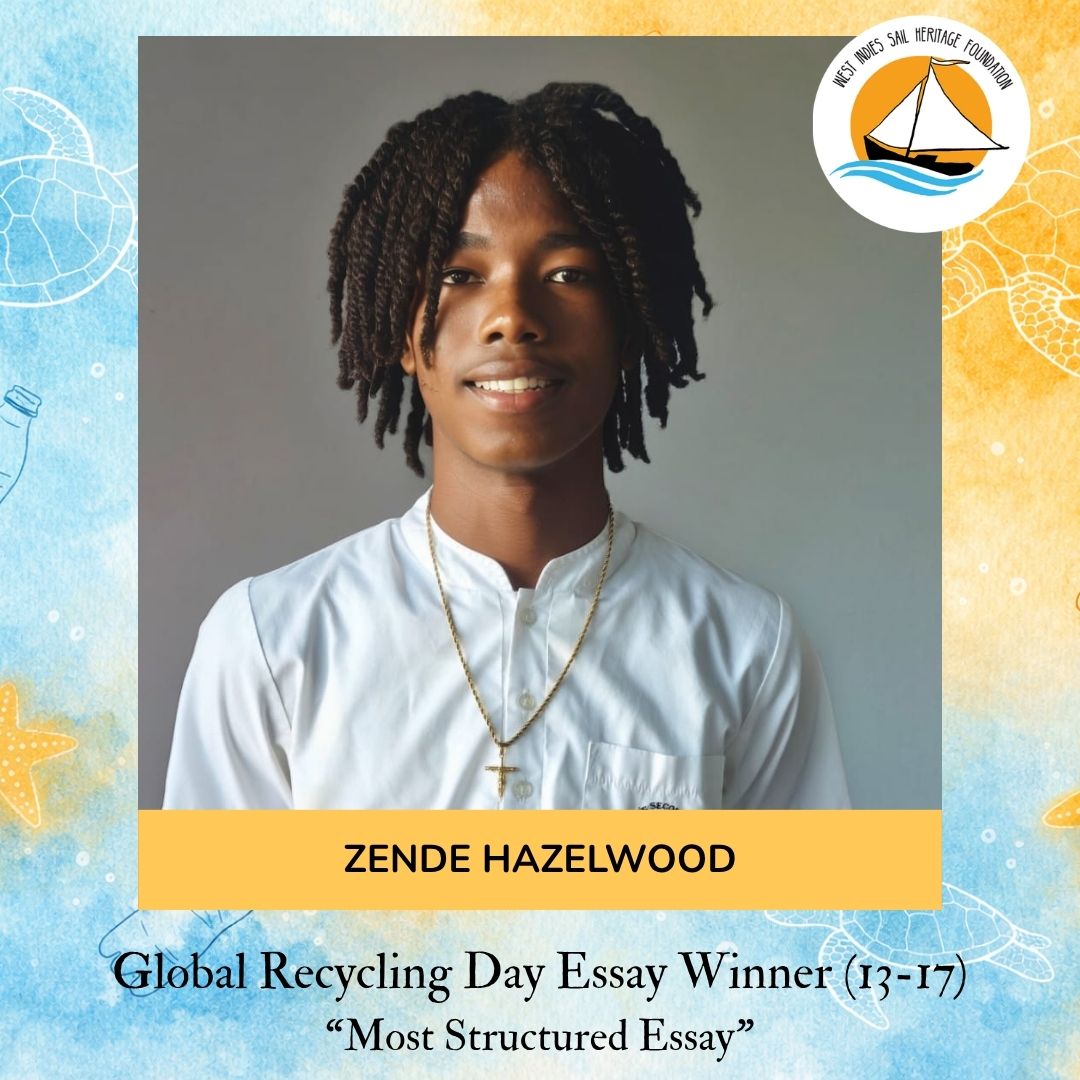 Zende Hazelwood of St. Anthony’s Secondary School Wins the 13–17 Category for Most Structured Essay in the Global Recycling Day Competition